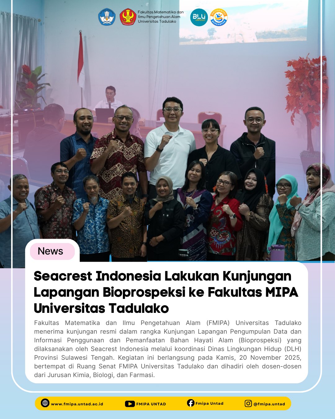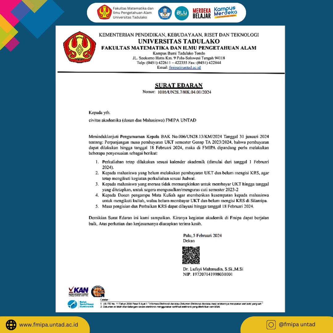 Fakultas Matematika dan Ilmu Pengetahuan Alam (FMIPA) Universitas Tadulako menerima kunjungan resmi dalam rangka Kunjungan Lapangan Pengumpulan Data dan Informasi Penggunaan dan […]